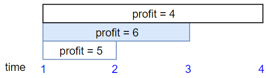 Input: startTime = [1,1,1], endTime = [2,3,4], profit = [5,6,4] Output: 6